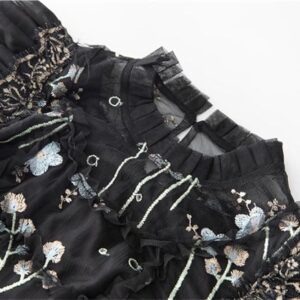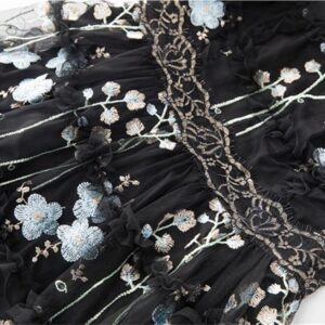 - Romantic Floral Embroidery: Delicate black fabric adorned with intricate floral detailing creates a timeless, feminine look for special occasions.