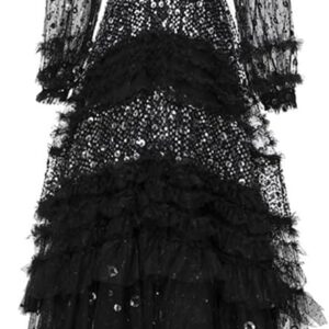 A-Line Dress Lace Design High Waist Wrap Dress Perfect Waist Curve Flowing Long Skirt