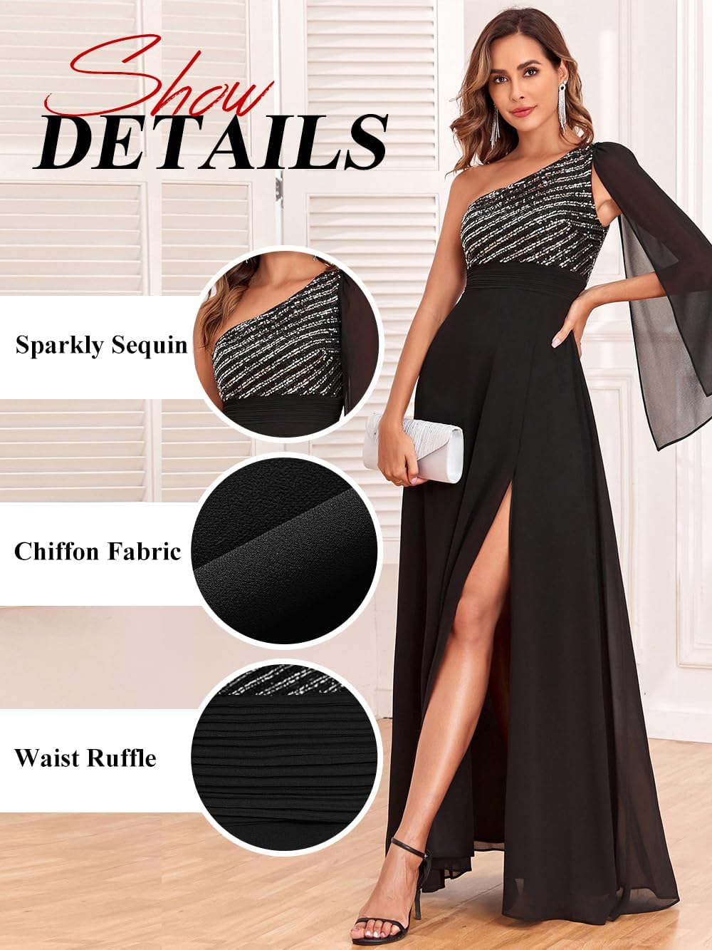 YHHOWEP Women’s Sparkly Sequin Dress Glitter One Shoulder Split Bridesmaid Cocktail Formal Evening Gowns Ball Dresses
