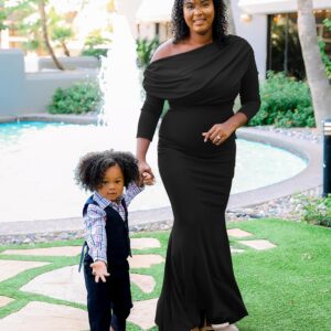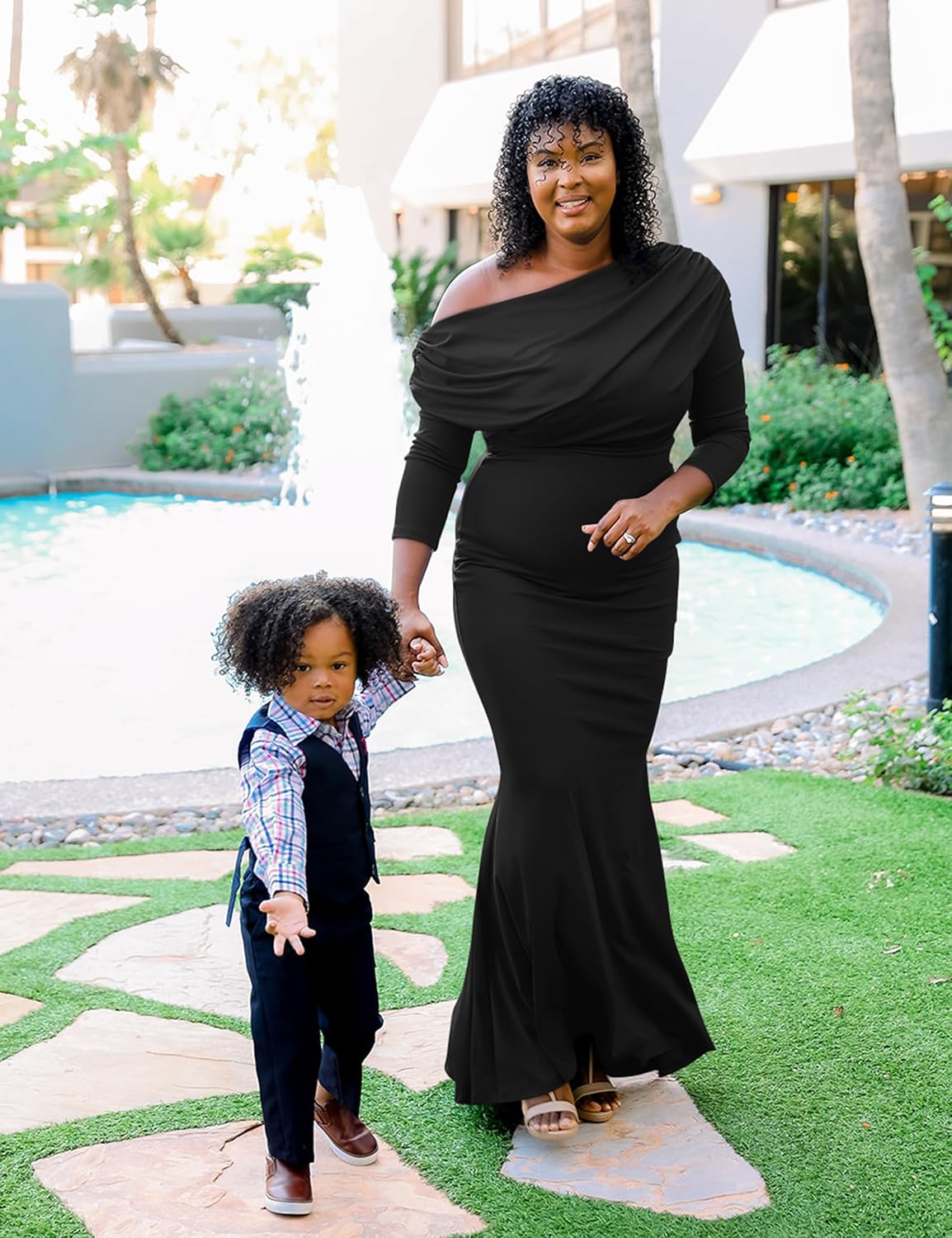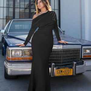 YMDUCH Women's Sexy Elegant Long Sleeve Off Shoulder Bodycon Long Evening Formal Dress
