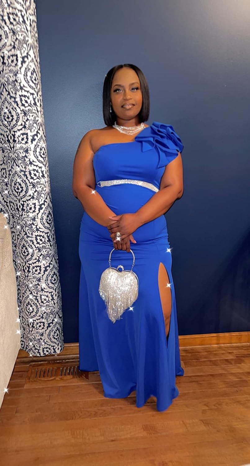 YMDUCH Women’s Sexy Sleeveless One Shoulder Ruffle High Split Party Evening Long Formal Dress