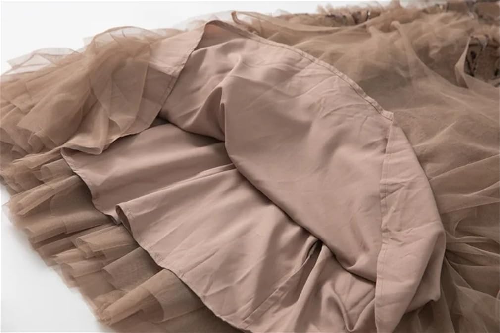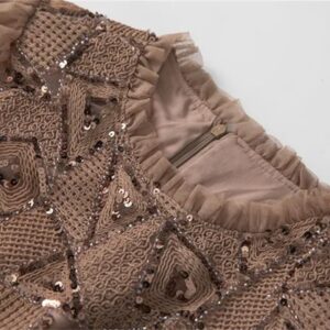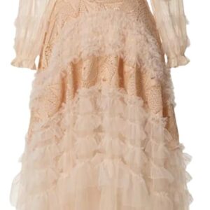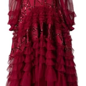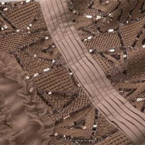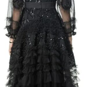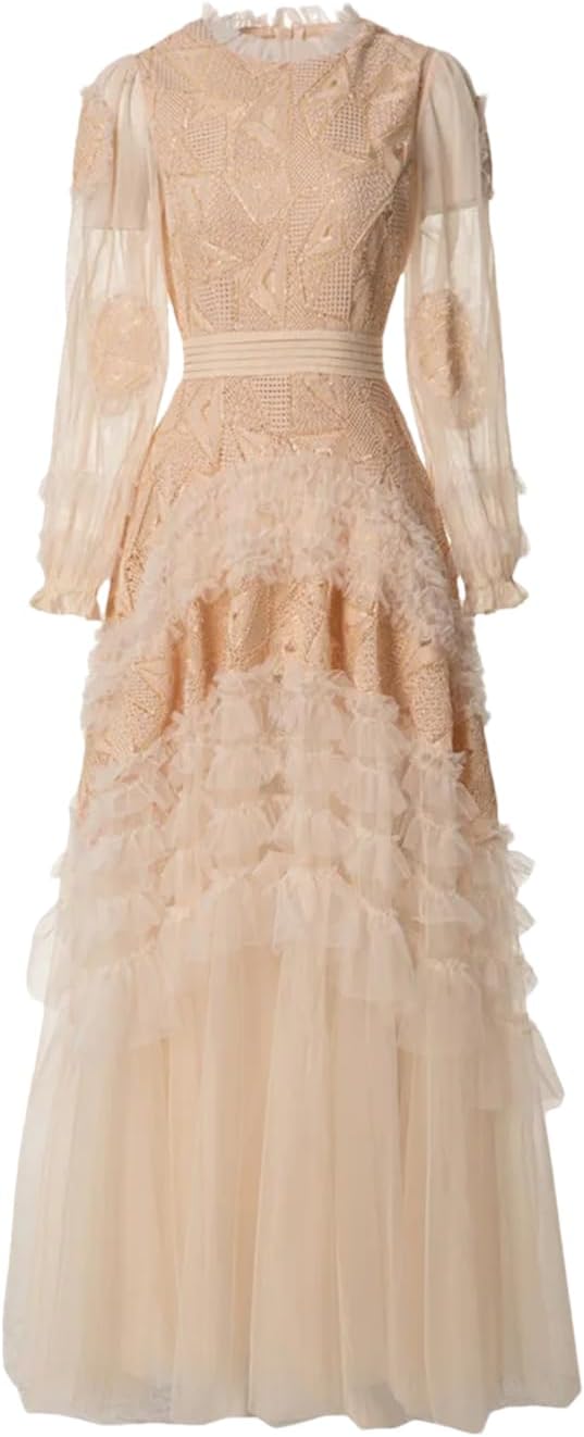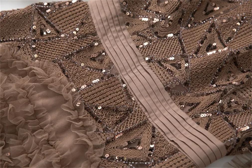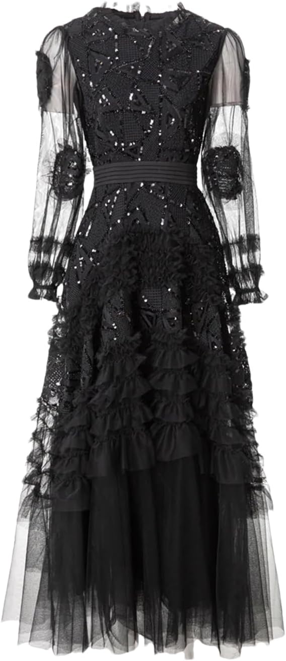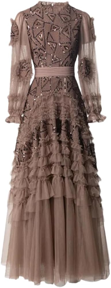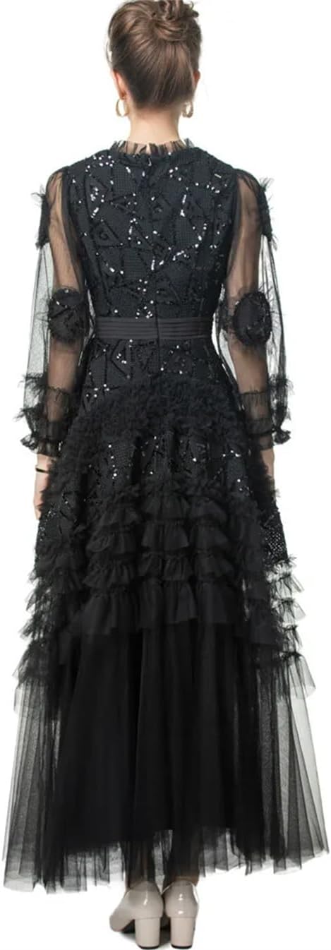 Zadaos Women’s Party Dress Sequin Spliced Mesh Ruffle Long Sleeved Large Swing Evening Dresses