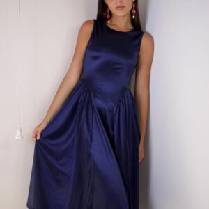 Womens 2025 Sleeveless Boat Neck A Line Satin Cocktail Prom Midi Dress