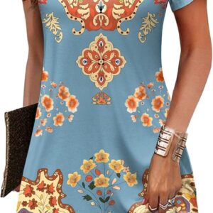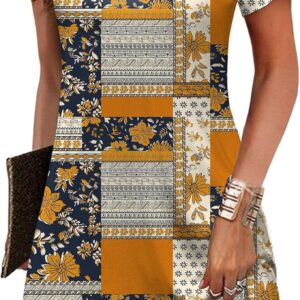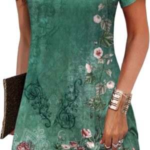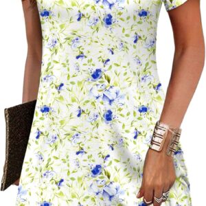 Zeagoo Short Sleeve Vacation Dress Summer Casual Floral Printed T Shirt Dresses