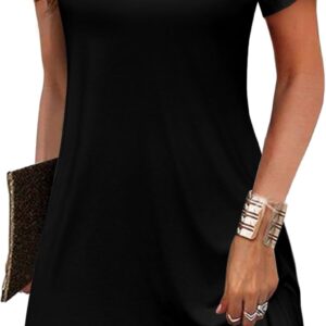 Material: 95% Polyester, 5% Spandex,The dress is Loose-fitting,so 1 size down may fit better if you want a slim fit look